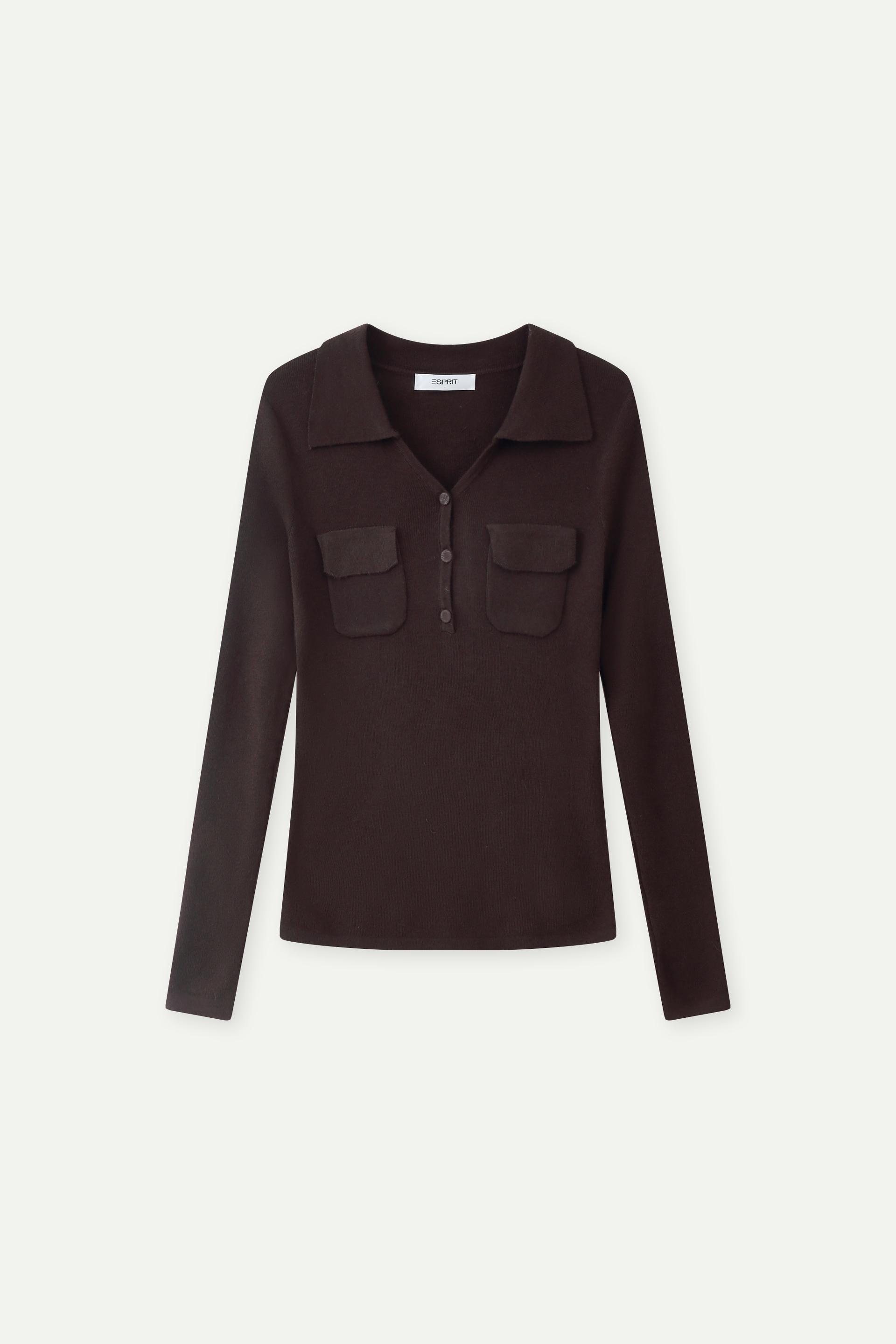 Clean and effortlessly polished — this ESPRIT knit top features a soft collar with a buttoned placket for a refined yet relaxed look. Designed with long sleeves and chest pockets for added practicality, it’s a versatile piece perfect for everyday or smart-casual styling.