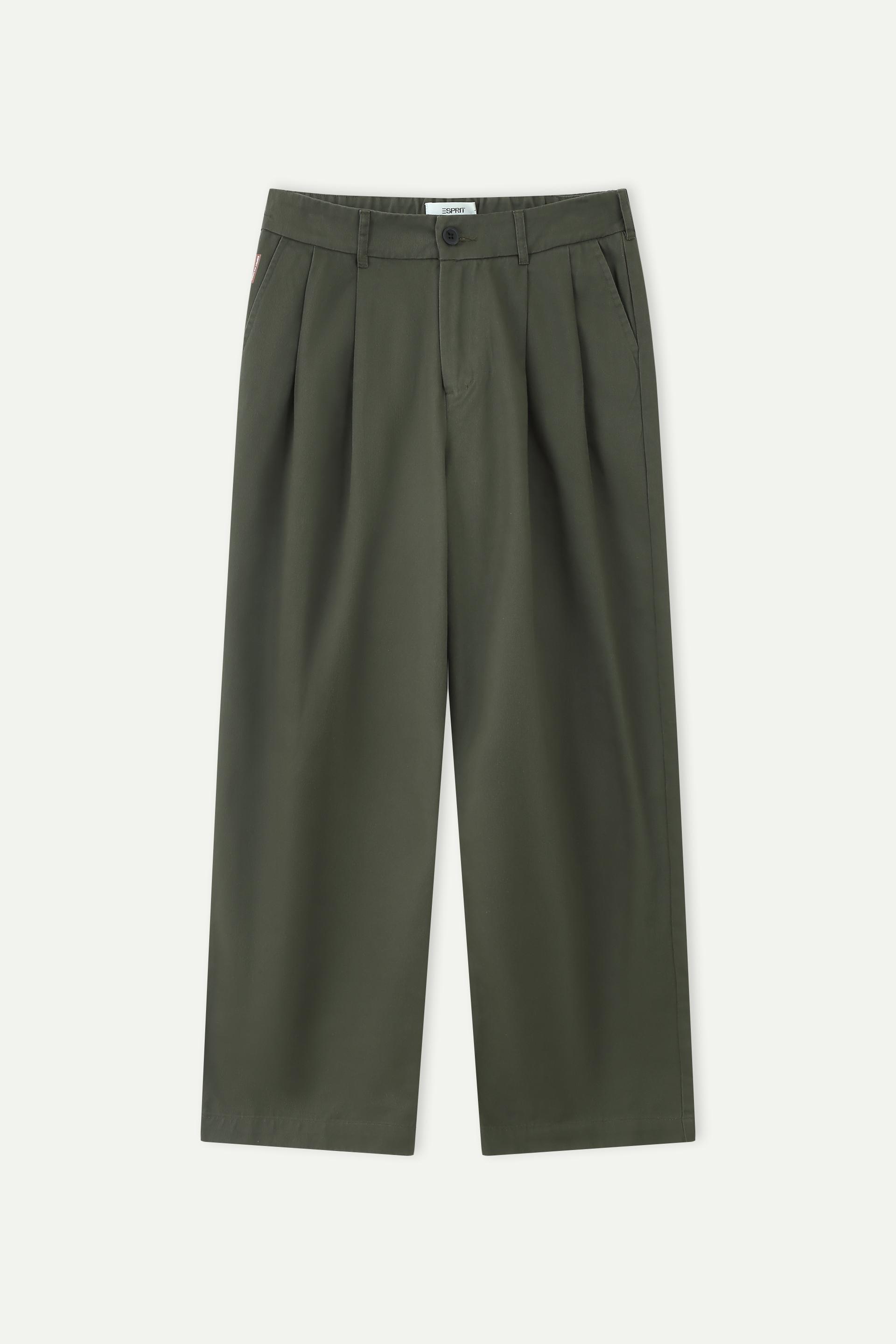 This ESPRIT Pleated Wide-Leg Cropped Trouser is made from lightweight twill fabric that keeps you cool in summer and works for casual or smart-casual looks in spring and autumn. The partially elasticated waistband with a button and zip closure fits comfortably without slipping, while the front pleats flatter your hip line and the cropped length adds a sleek touch. Functional back pockets hold small essentials, and the subtle logo badge adds a durable, stylish detail. It retains its shape after machine washing, making it a practical wardrobe staple.