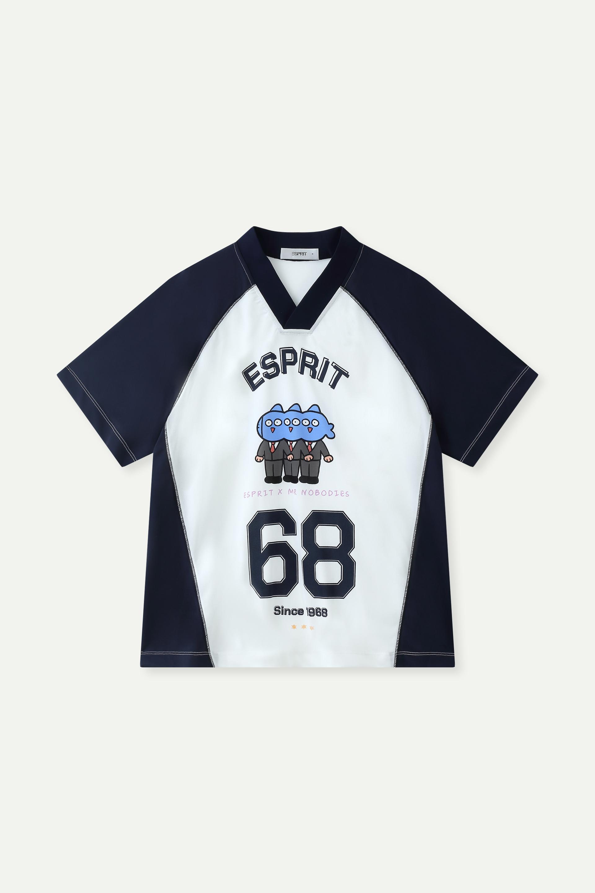 A playful collaboration piece, this unisex jersey tee features a bold raglan colour-block design. Crafted from lightweight, breathable performance fabric, it offers a relaxed oversized fit for all-day comfort. The front showcases the cute Mr. Nobodies cartoon graphic alongside the iconic "68" numbering and ESPRIT branding, blending retro sporty vibes with whimsical street style—perfect for casual outings and layering.