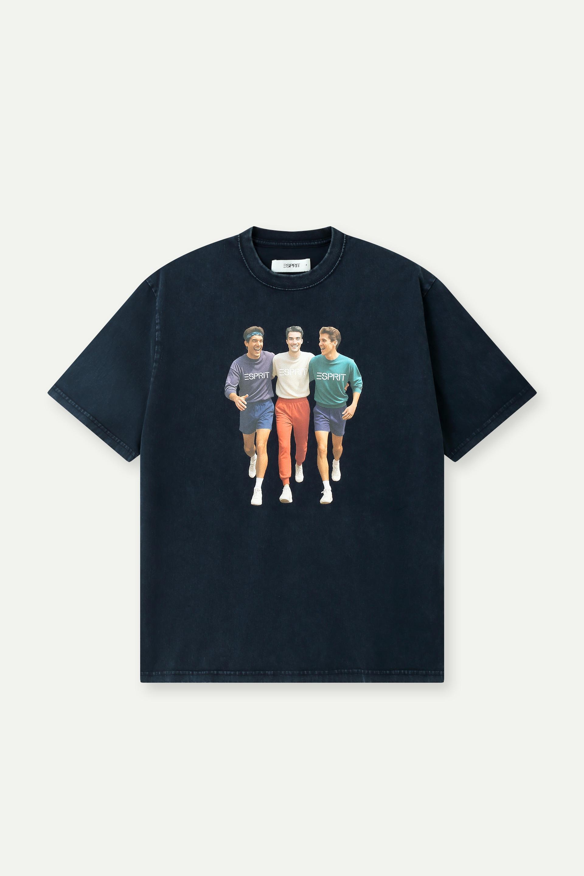 帶點俏皮、復古又充滿 ESPRIT 個性——這款圖案 T 恤以水洗海軍藍色調打造隨性質感,胸前印有三位穿著經典 ESPRIT 造型的人物圖案,為簡約版型增添活力與懷舊氛圍。寬鬆剪裁配合柔軟棉質布料,輕鬆易穿,是日常造型的百搭單品。